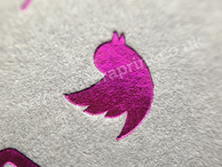 Business cards printed with light metallic copper foil on pale grey colorplan card.
