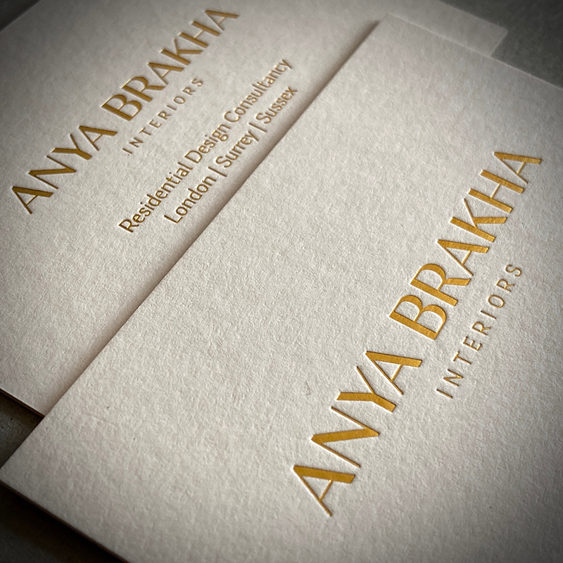 540gsm ebony colorplan business cards, hot foil printed using metallic gold (reverse side printed in gold and satin black foils).