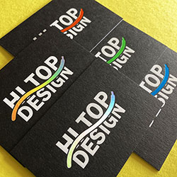 540gsm ebony colorplan business cards, hot foil stamped with iridescent silver print.